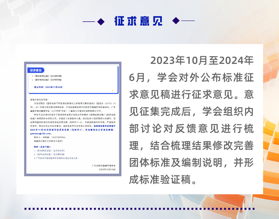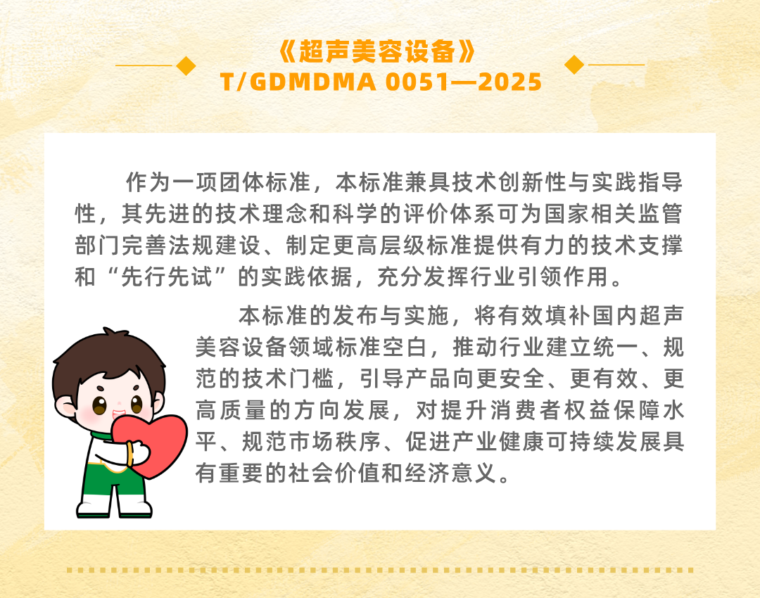2025年9月12日,在广东省医疗器械管理学会(以下简称学会)的组织下,T/GDMDMA 0050—2025《射频美容设备》、T/GDMDMA 0051—2025《超声美容设备》两项团体标准正式发布并实施。
