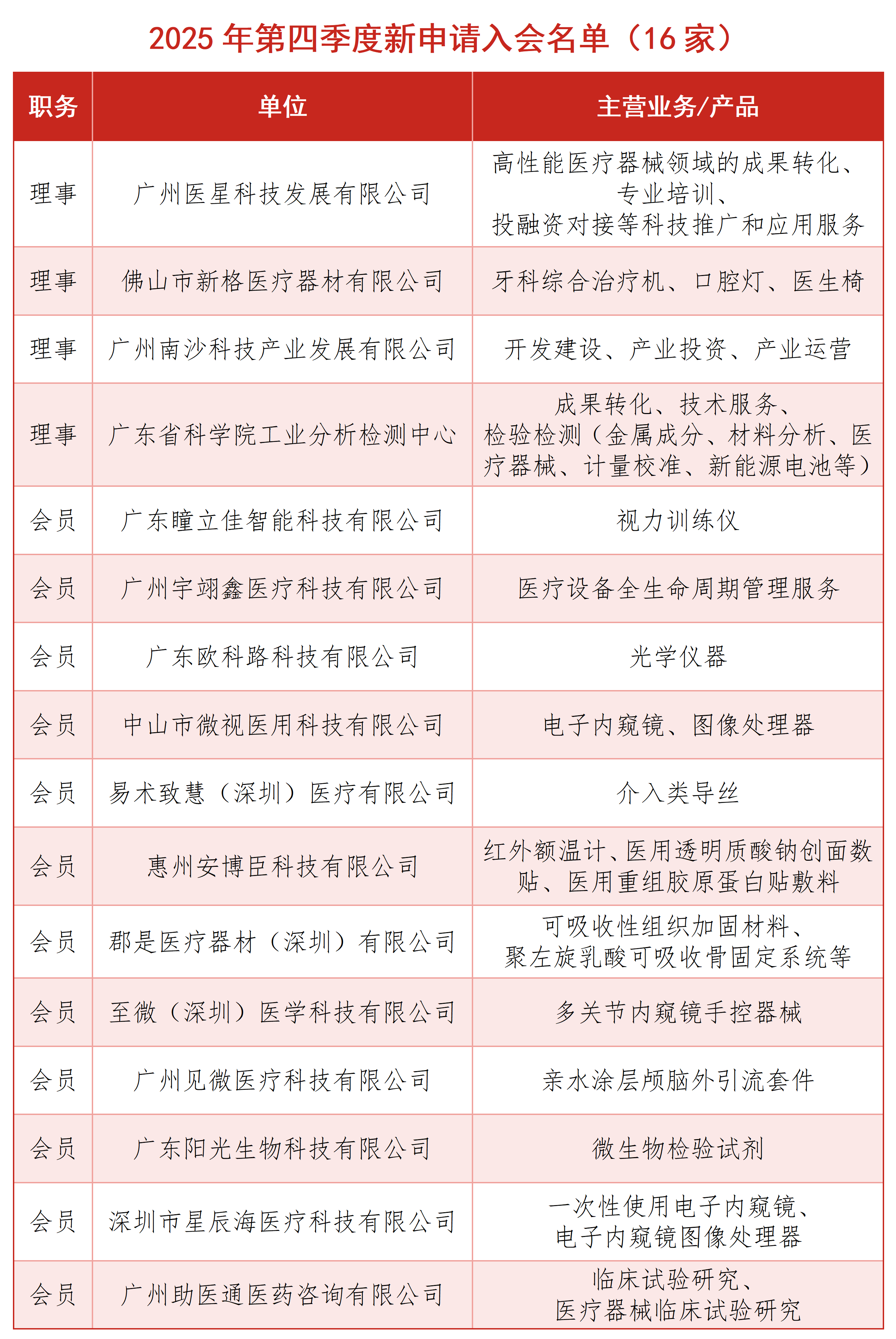 现有以下单位自愿加入广东省医疗器械管理学会,根据《广东省医疗器械管理学会章程》的相关规定,增补会员单位需经会议讨论通过,现采用书面形式公示,并在下一次会议确认。现学会拟推荐增补以下会员单位,公示如下: