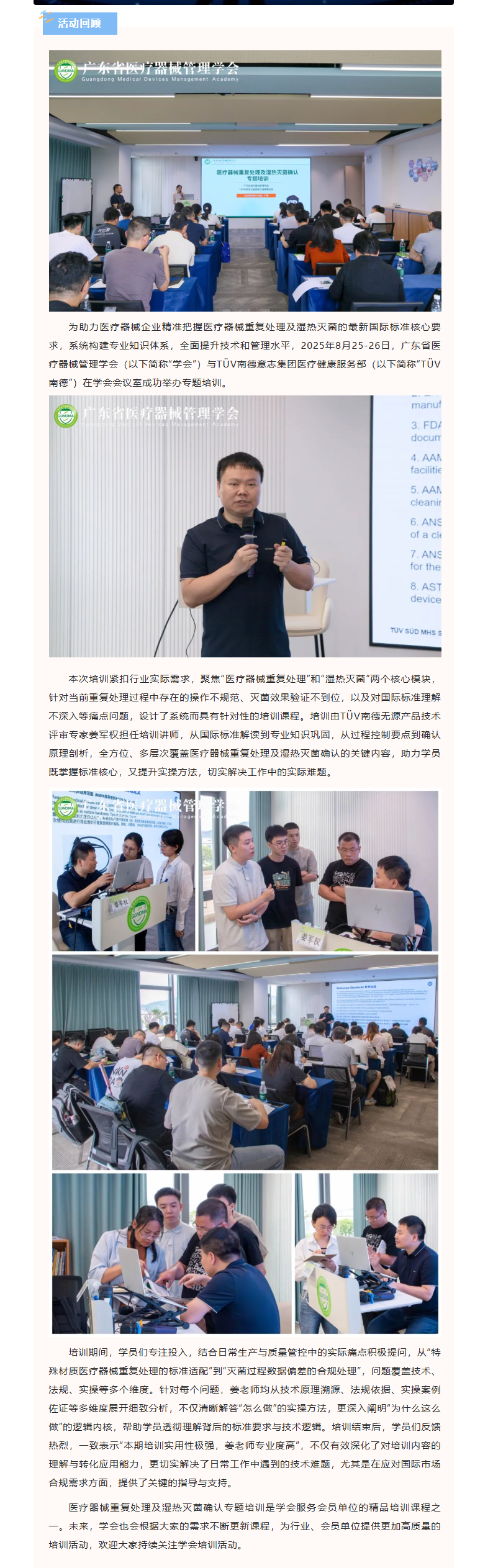学会与TÜV南德联合成功举办医疗器械重复处理及湿热灭菌确认专题培训班