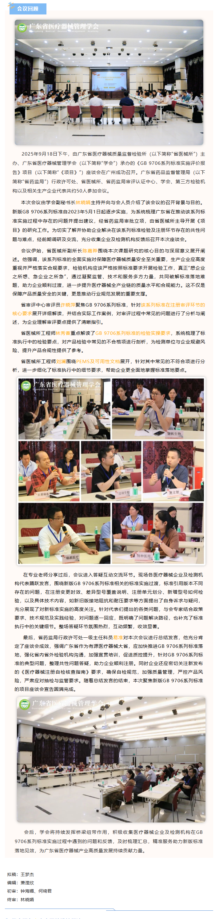 《GB 9706系列标准实施评价报告》项目座谈会圆满完成!