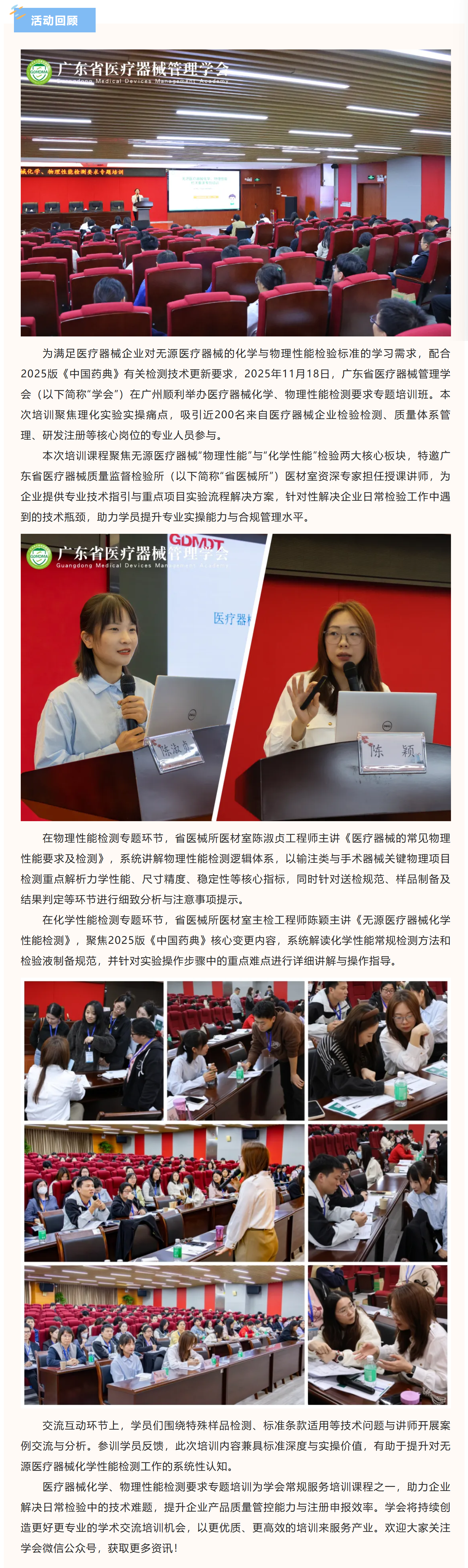 无源医疗器械化学、物理性能检测要求专题培训顺利举办