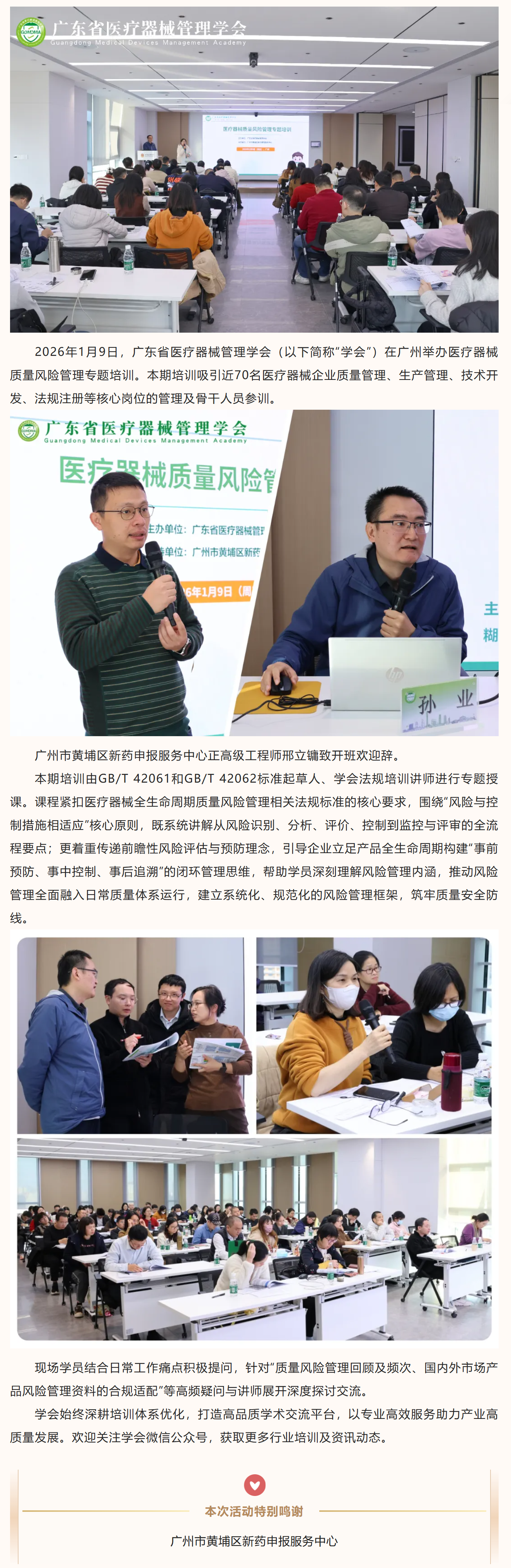 医疗器械质量风险管理专题培训顺利举办
